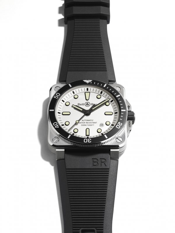 Now, the company has added the new BR 03-92 Diver White to its Diver family. Inspired by “frozen watery worlds”, the watch comes with a white dial, which is something you don’t see very often from Bell & Ross. However, the dial’s exact colour is an opalescent silver in subtle tones, with a matte surface that has been metallised to create iridescent reflections across the piece.