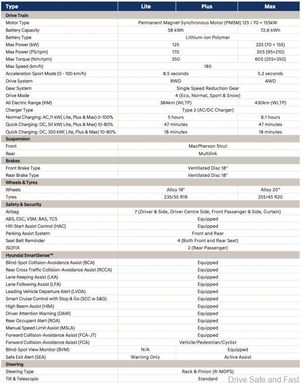 The IONIQ 5 arrives in Malaysia in three specifications, mirroring what was available with the Kona Electric. There’s the base model Lite, the mid-spec Plus and the full-spec Max. Pricing is as follows: