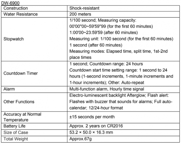 DW-6900 was released in 1995, which was the first G-SHOCK to feature an EL backlight. The backlight’s ability to display text or a symbol became a popular feature. Also, the series won fans as a “Triple Graph” model and has remained just as popular to this day. In terms of specification, the watch is shock-resistant and has 200-meter water resistance.