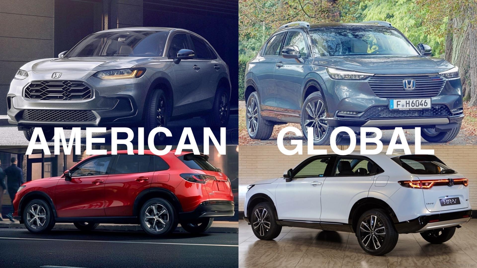 From the side it’s evident that these cars are not the same. In terms of proportions, it looks like the American model has longer overhangs. Towards the rear, the American HR-V also has a more conventional shape versus the global HR-V whose rear glass and rear bumper steeply rake inwards towards the centre. The global model also appears to have a more distinctly sloping roofline and hidden rear door handles versus the conventional look of this new American model. What the American model does have is a little more glass between the C- and D-pillars where the global HR-V makes do with longer windows for the rear passengers. This also appears to translate to longer doors at the rear, which will likely lead to very different ingress and egress characteristics for occupants at the rear of both cars.