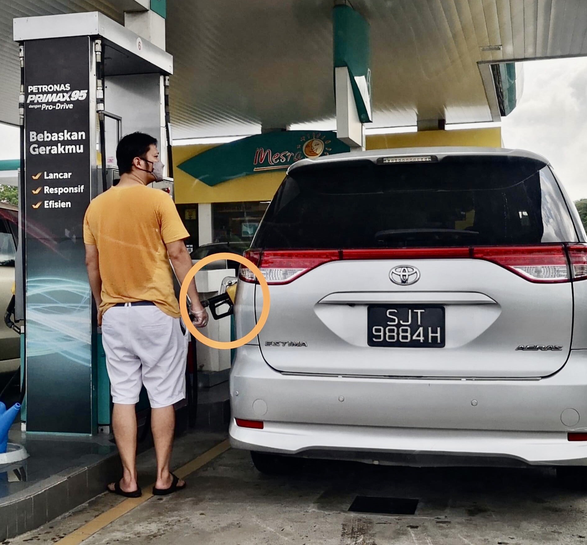 Please make a report to KPDNHEP if you see a Singapore-registered car pumping RON95