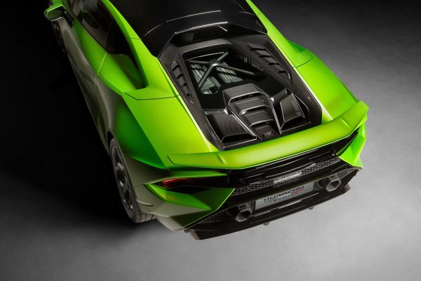 While aesthetically the fixed rear wing completes the unique lines of the Tecnica, its aero design essentially contributes to the 35% improvement in rear downforce compared to the Huracán EVO RWD, as well as ensuring no increase in drag: in fact, drag is reduced by 20%, improving aero balance and supporting stability during braking and turning speed. The Tecnica’s underbody is also optimized with new aero deflectors for improved aerodynamic efficiency.