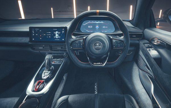 There are seven interior color choices, all available at no extra cost. They are red, black, grey and tan Nappa leather, as well as black Alcantara with either red, yellow or grey stitching. Satin chrome trim finishers, white interior mood lighting and Lotus-branded sill kick plates complete the premium look.