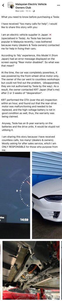 Tesla reseller Rex Lim vents on the Malaysian Electric Vehicle Owners Club FB Page.