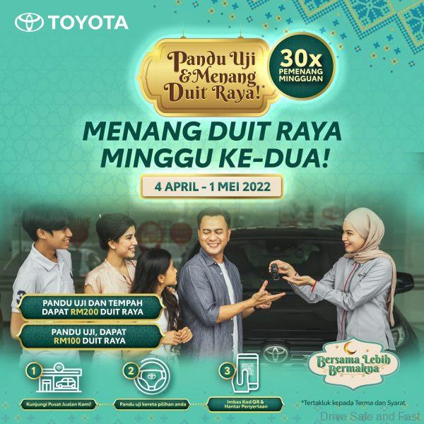Celebrations for the months of Ramadan and Syawal, with the theme, ‘Bersama Lebih Bermakna’, are underway with the launch of UMW Toyota Motor’s Pandu Uji dan Menang Duit Raya contest from now until 1 May 2022. Toyota enthusiasts are encouraged to drop by any Toyota showroom and test drive any Toyota model for some ‘duit raya’. Each test drive is a contest entry to win ‘duit raya’ worth RM100 while a test drive and successful booking stands a chance to receive RM200 ‘duit raya’. A total of 30 winners will be selected to receive ‘duit raya’ weekly.