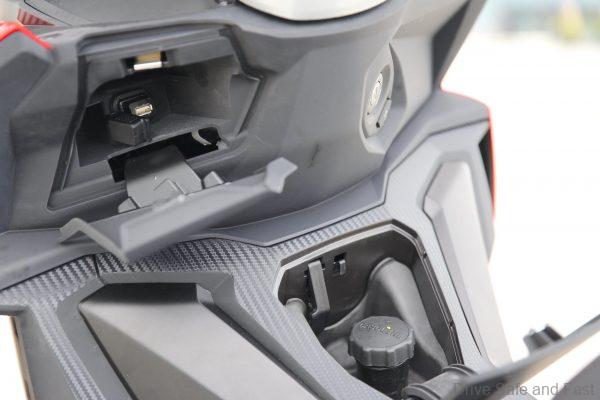 A 25-litre under-seat compartment can accommodate a full-face helmet.