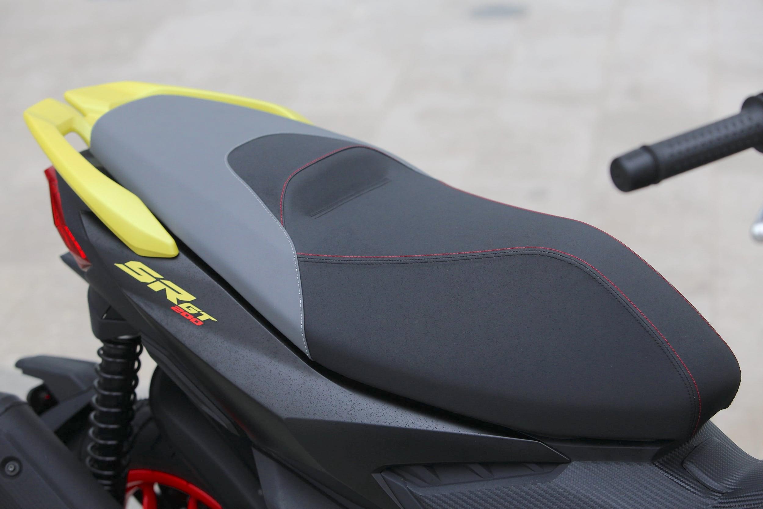 The Aprilia SR GT also stands out for its minimum ground clearance of 175 mm, a never-before-seen value for traditional compact GT scooters. This allows the rider to easily surmount any bumps in the road and descend from any altitude.