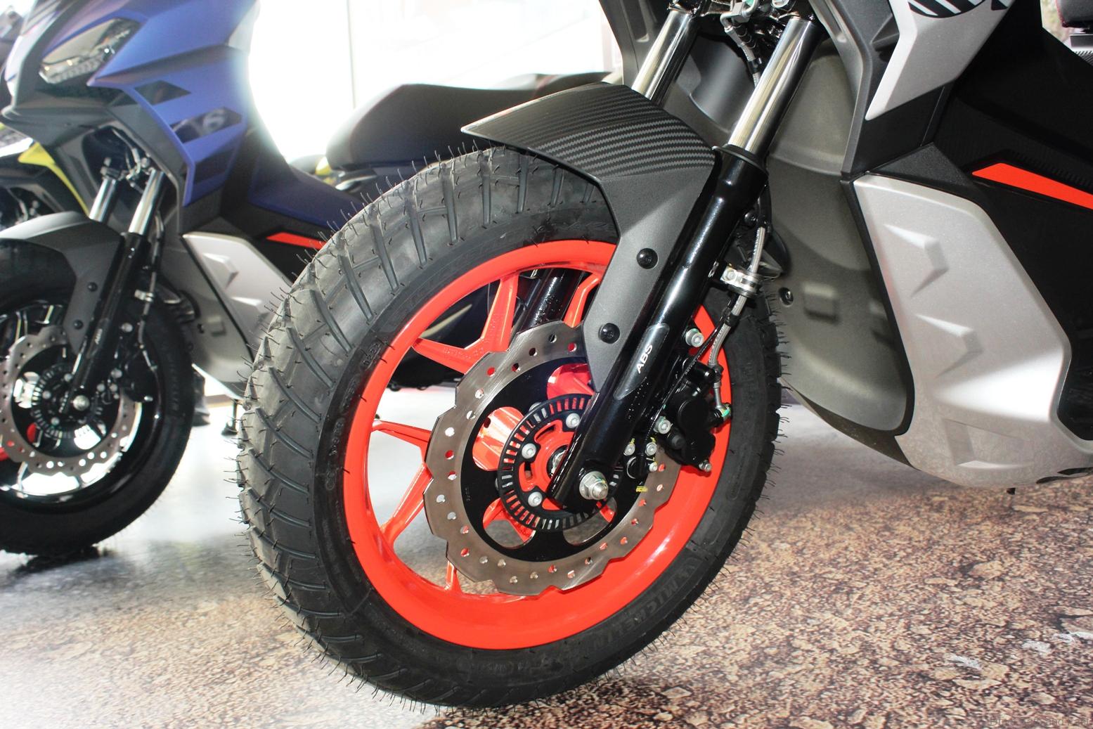 The braking system comprises a 260 mm disc up front and a 220 mm disc at the rear, while the alloy wheels – measuring 14 inches at the front and 13 inches at the rear – are shod with all-terrain tyres with a slightly knobby tread. ABS is present at the front only.