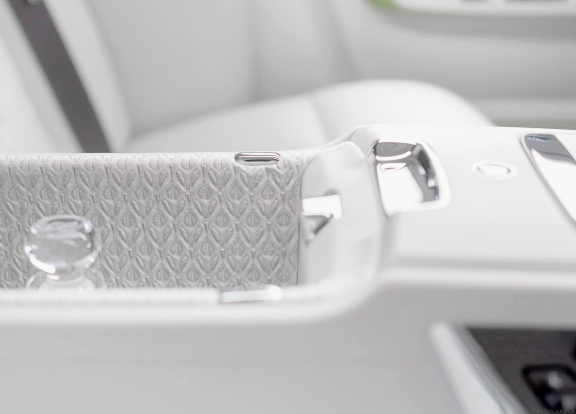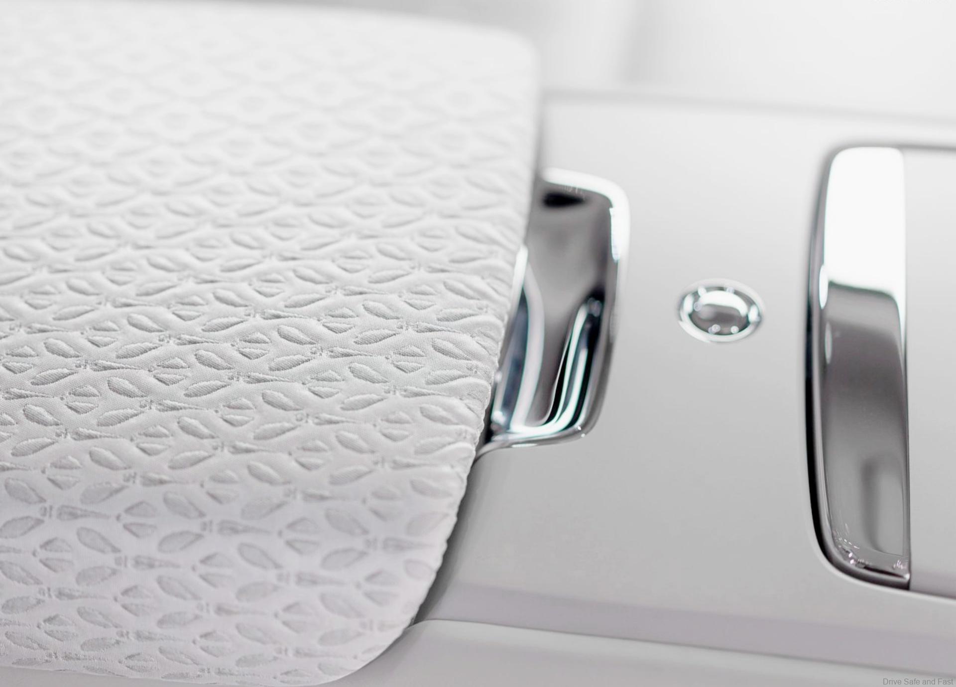 Both materials share an original repeating pattern based on an abstract interpretation of the Spirit of Ecstasy. The silken material appears on key touchpoints, such as the armrest, centre console and more. The bamboo material is embroidered with larger icons and is placed on the lower elements of the interior where the more durable material will be more at home.