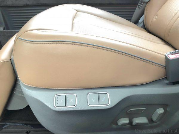 There is a little disappointment with the dashboard as the grey plastic trim on the dashboard and around the suede material does not reflect a true premium look. The hard grey plastic trim seems to be shared with the Starex MPV. The latest Hyundai Sonata and Elantra has a far better delivery of dashboard plastic and trim.