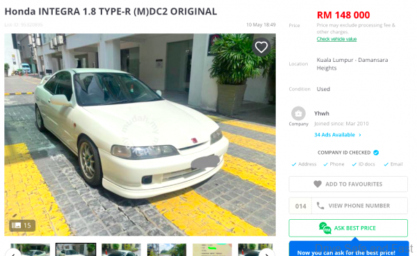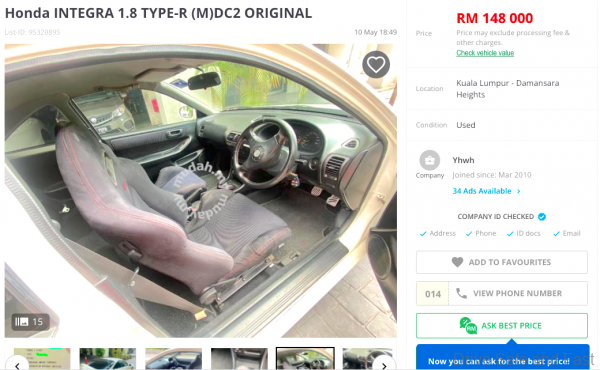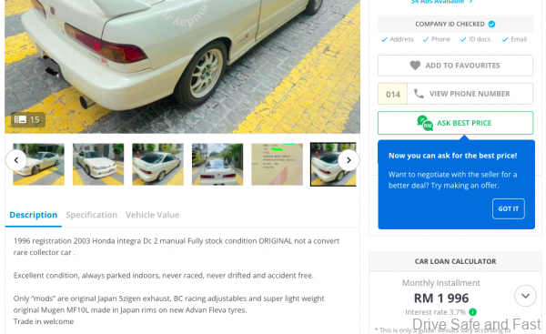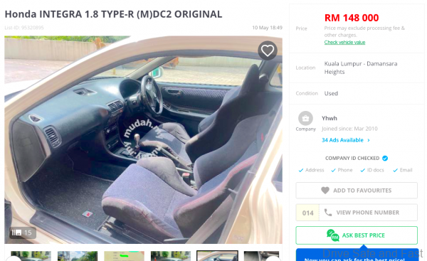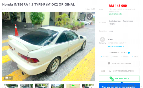 This says a lot as all these cars are ‘cash sale’ only and prices are between RM130,000 to RM170,000. We spotted one un-molested Type-R for sale at RM148,000. It is a 1996 Integra DC2 Type R which was registered in 2003. The seller has kept the car relatively stock and ‘promises’ no track, race of drift use which means it is well kept unit. All you need a well experienced mechanic to check this for you.