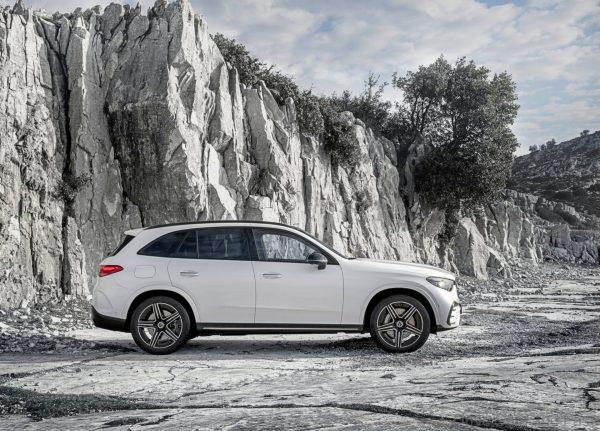 The exterior of the GLC is just as wide as its predecessor, but is now 60mm longer and 6mm lower than its predecessor. Track widths are 6mm wider in front and 23mm wider at the rear. The overhangs and wheelbase have been expanded too.