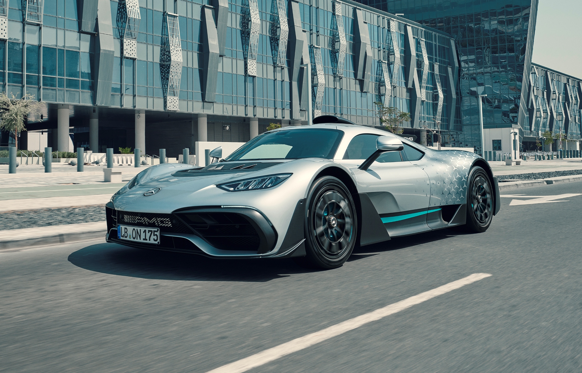At the heart of the One is the E Performance hybrid drive derived directly from Formula 1 and jointly developed with the experts at Mercedes-AMG High Performance Powertrains in Brixworth. It consists of a 1.6-litre V6 engine with an electric turbocharger and four electric motors – one integrated into the turbocharger, one installed directly on the engine and two driving the front wheels.