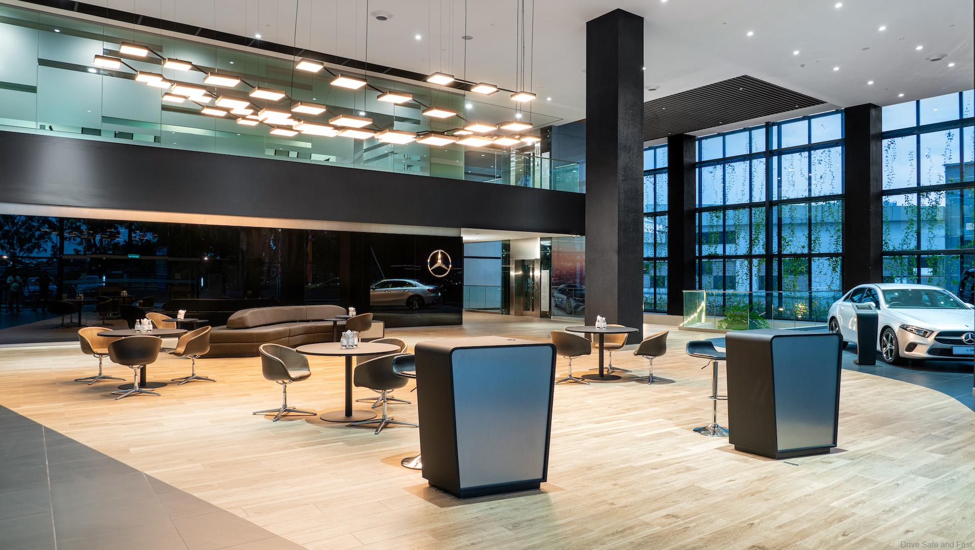 The new showroom spans close to 79,000 sqft of land area across seven floors. The main showroom floor itself is 11,526 sqft and can house 16 display vehicles on top of a self-service café, kid’s playroom and luxurious ladies powder room for customers. There’s also a lifestyle retail experience on this floor with Mercedes-Benz accessories and collectables.