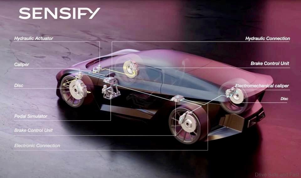 Sensify will come in two different packages, a fully electronic 4-wheel braking system controlled by electric motors and a “hybrid” system where the rear calipers will be electric and the front calipers hydraulic but with two independently closed systems on each side so Sensify can still make calculations and control each tyre.