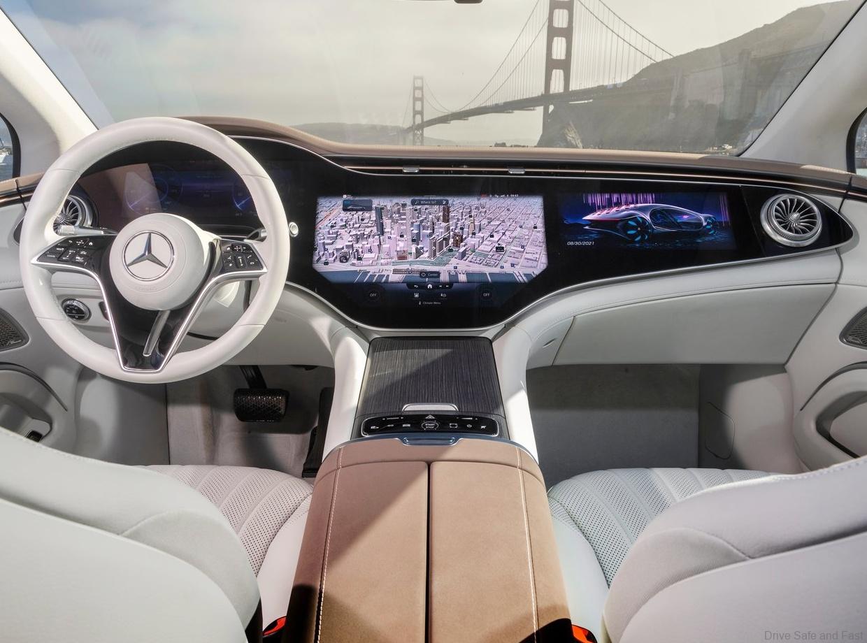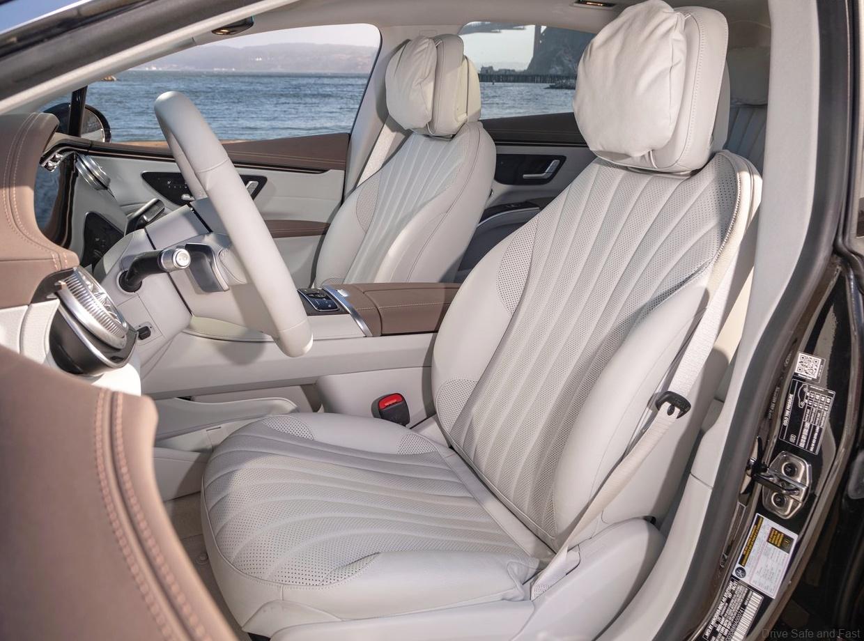 With a coupe-like design, massive front grille, sharp headlights and a sleek body, the Mercedes EQS 450+ is unmistakable on the outside and extremely luxurious on the inside.