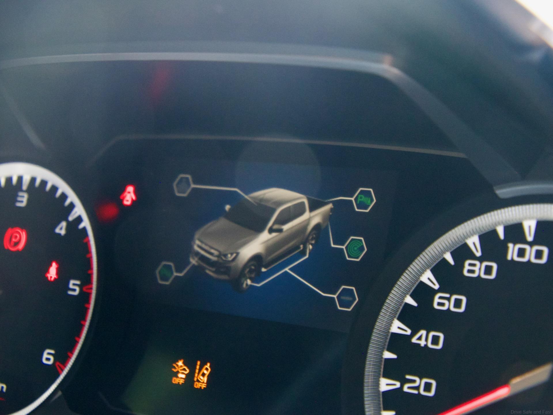 Finally, there’s the ADAS system. Isuzu uses stereo cameras for its Pre-Crash Safety, Lane Support and Speed Assist systems. Rear radar units are used for rear cross traffic and side blindspot assists while front and rear sonar sensors give parking guidance.