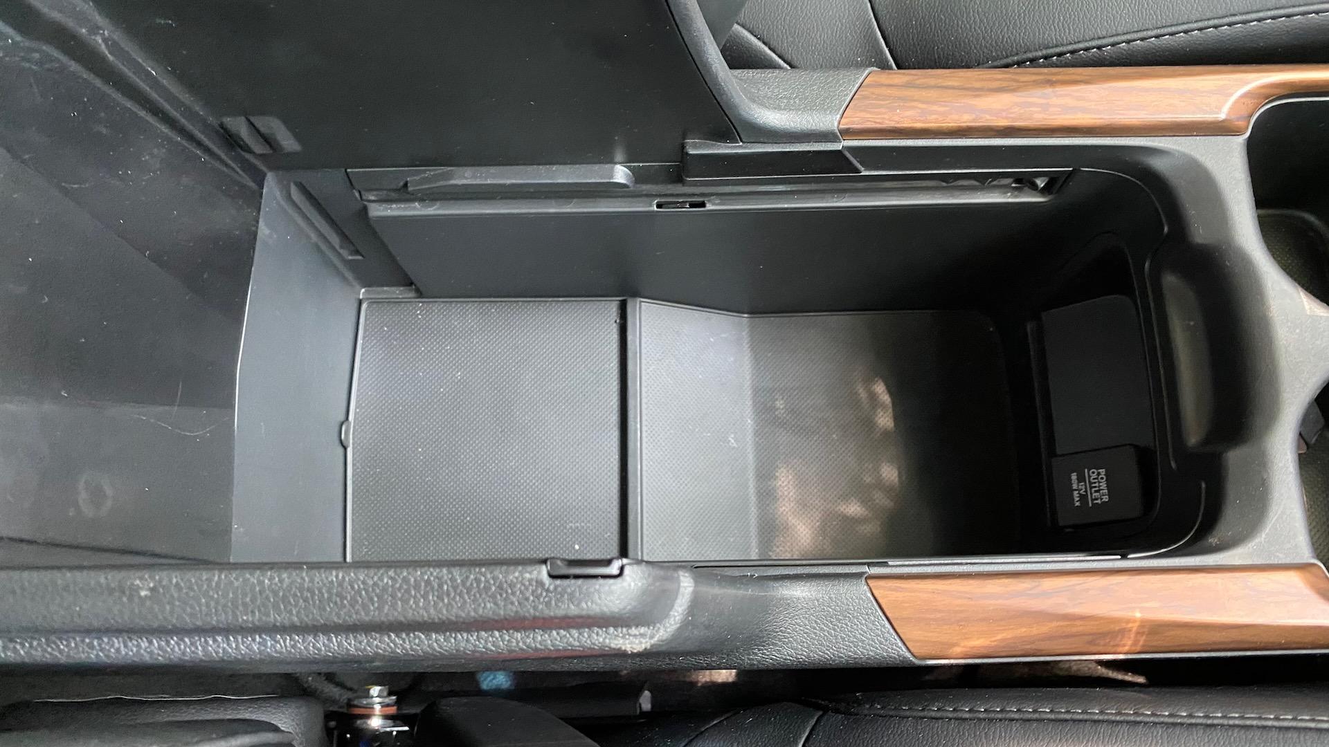 The CR-V also has storage figured out. There are loads of cubby holes for all occupants. The one between the front occupants is unrivalled as far as I can tell. Honda figured out a way to open up enough space in the centre for a whole handbag. A simple sliding, removable shelf helps divide the space up if necessary.