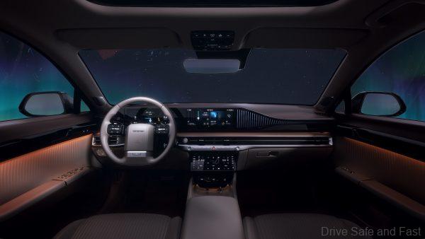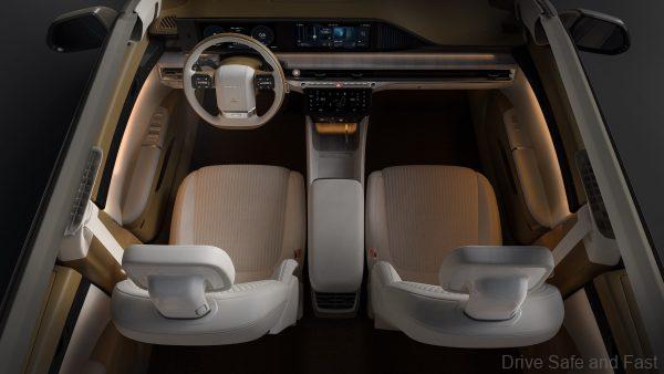 The ambient mood lighting spreads softly across the door trim and the front of the dashboard, and interactive lighting on the upper right of the integrated display provides a new user experience. The pattern details on the door trim are designed with a delicate Korean aesthetic. Together, these elements provide passengers a calming space for relaxation and recovery.