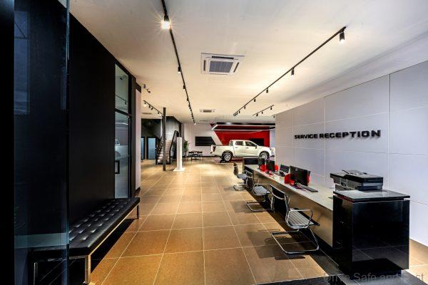Its showroom features an air-conditioned interior where pick-up trucks are displayed and a sheltered foyer where lorries can be viewed in comfort.