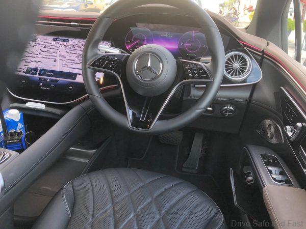 The weight of 2.4 tonnes is felt when cruising on the open highway and you see the scenery rushing past as if you were riding in an electric train. Yes, it is better to be in the back of the EQS as comfort is high and almost Maybach like.
