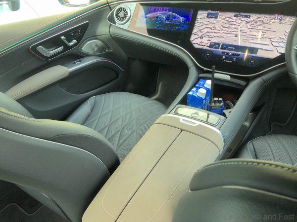 So, we are now test driving a full electric ‘S-Class’. The EQS. This is large vehicle with no shortage of luxury appointments in its sumptuous cabin.