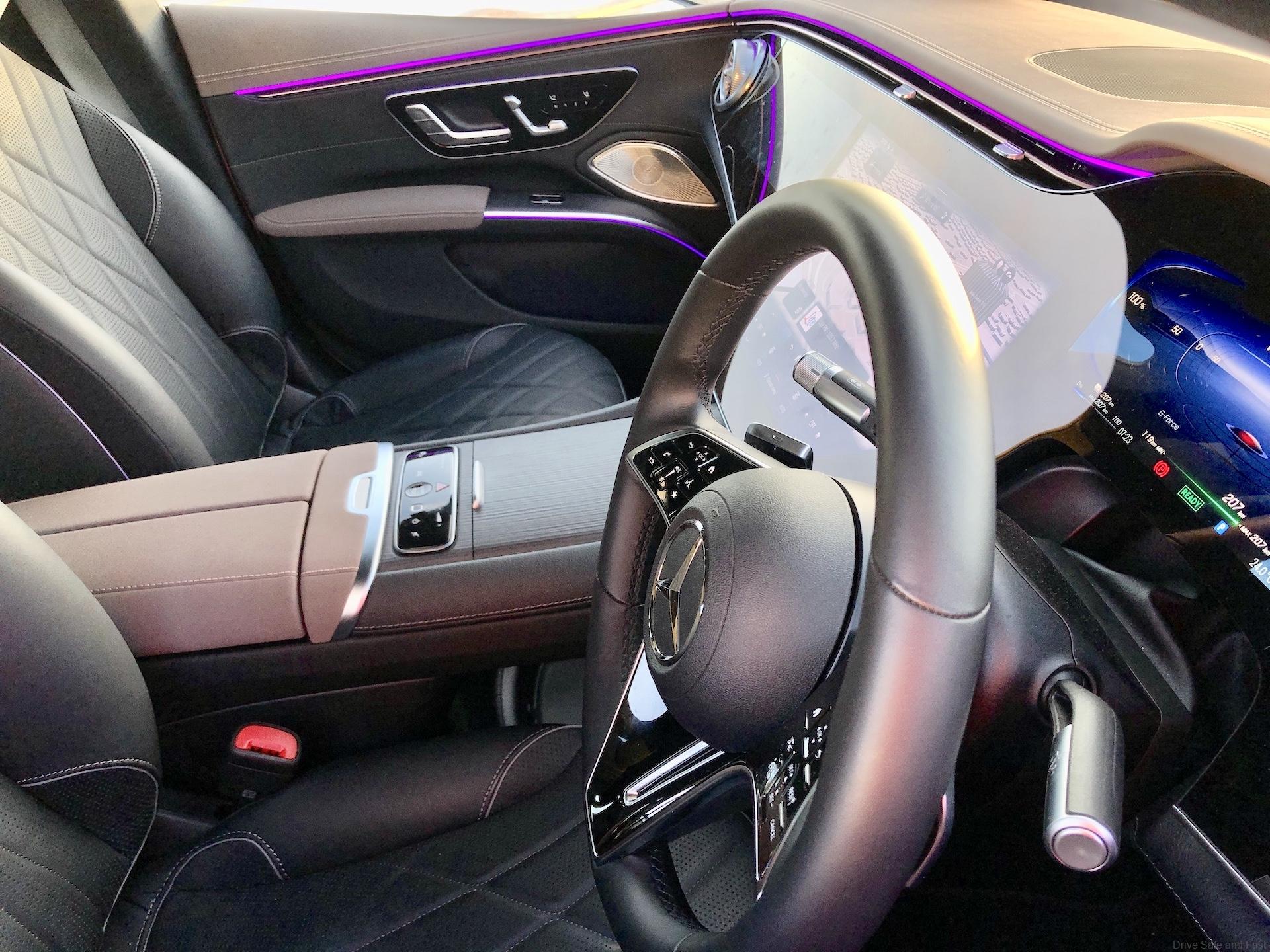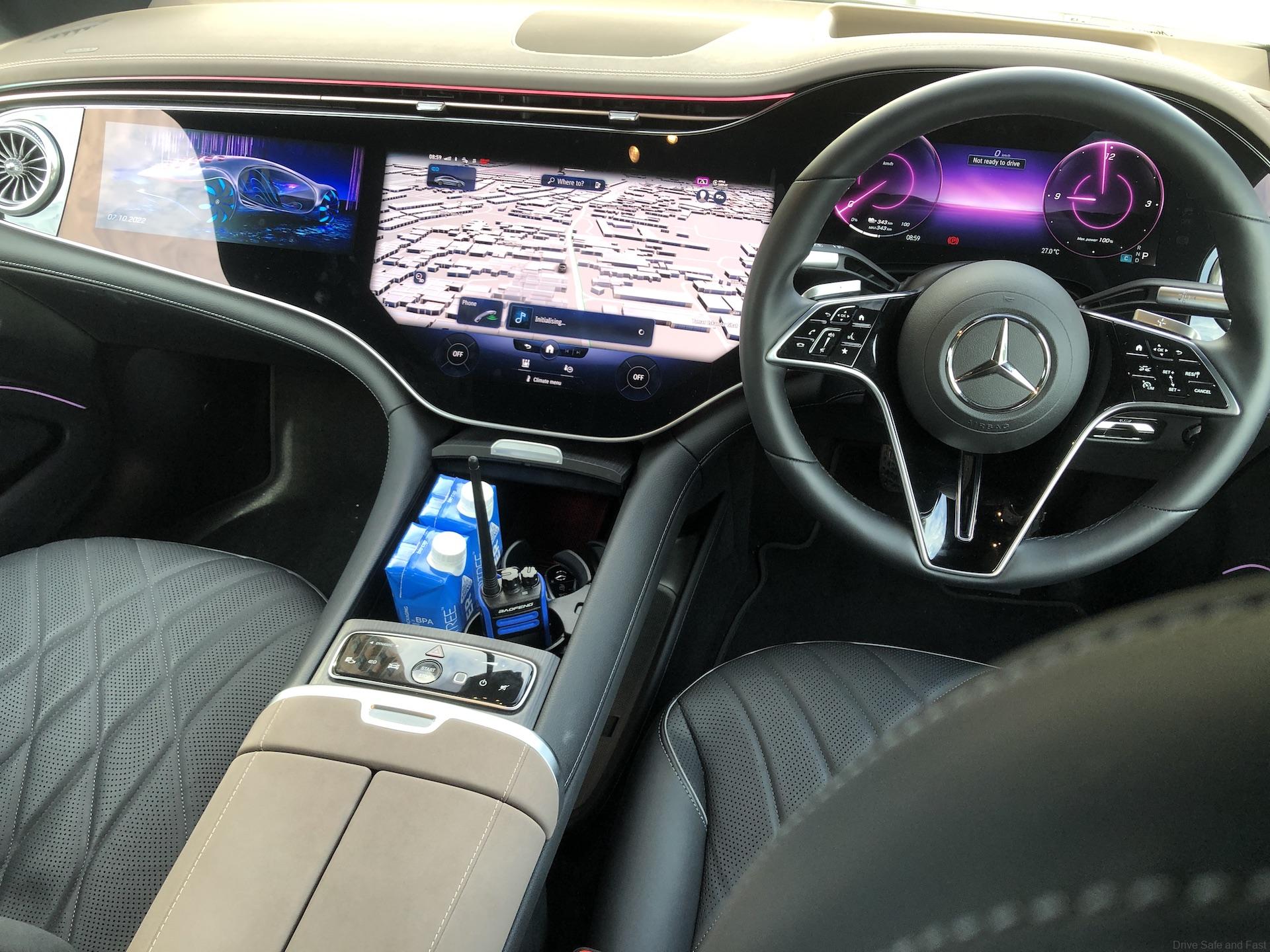 So, we are now test driving a full electric ‘S-Class’. The EQS. This is large vehicle with no shortage of luxury appointments in its sumptuous cabin.