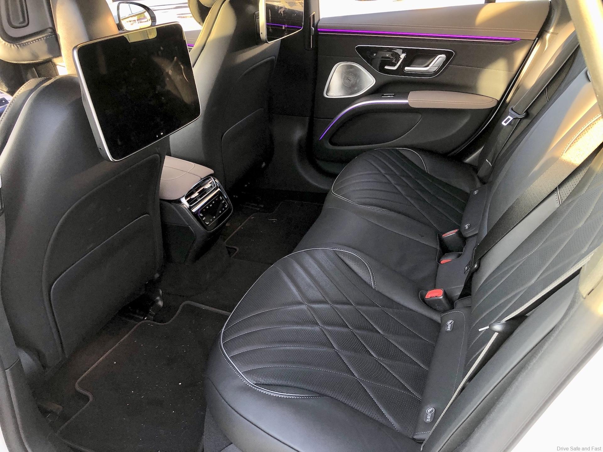 There is nappa leather covering the large well bolstered seats and even the top of the dashboard. You get a 12.3-inch driver display, plus the MBUX multimedia system with 12.8-inch OLED central display, complete Driving Assistance Package and the MBUX augmented navigation system.