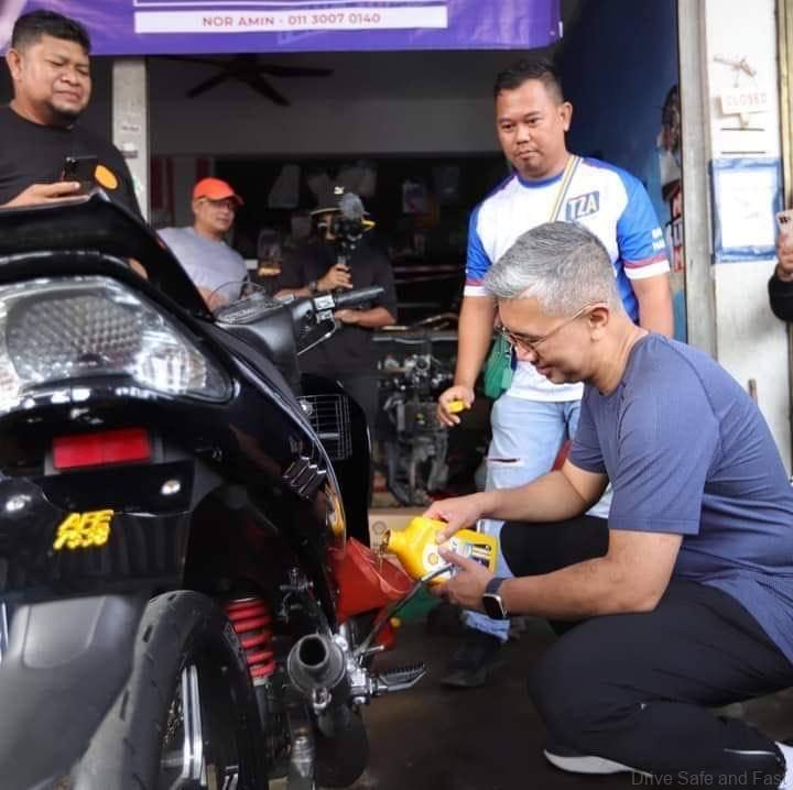 Meanwhile, if you are wondering, the motorcycle lubricant in his hands is from Shell. Riding on a hot day can be a challenge.