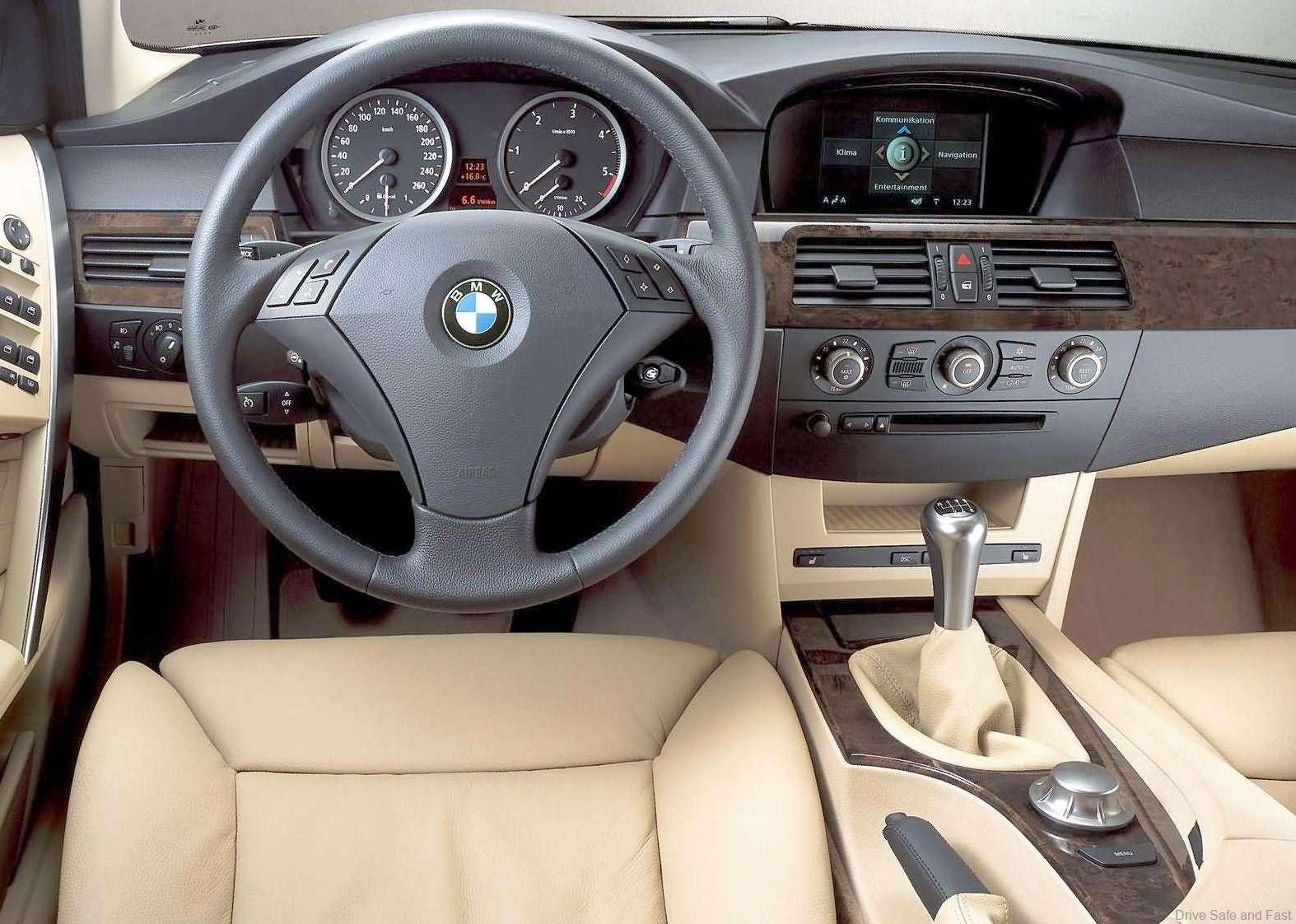 The E60 also introduced a different style to the 5-series line including a much rounder body, and an interior, unlike the driver-oriented E39, that is flat like the E65 7-series with an LCD display, basic buttons and iDrive system.