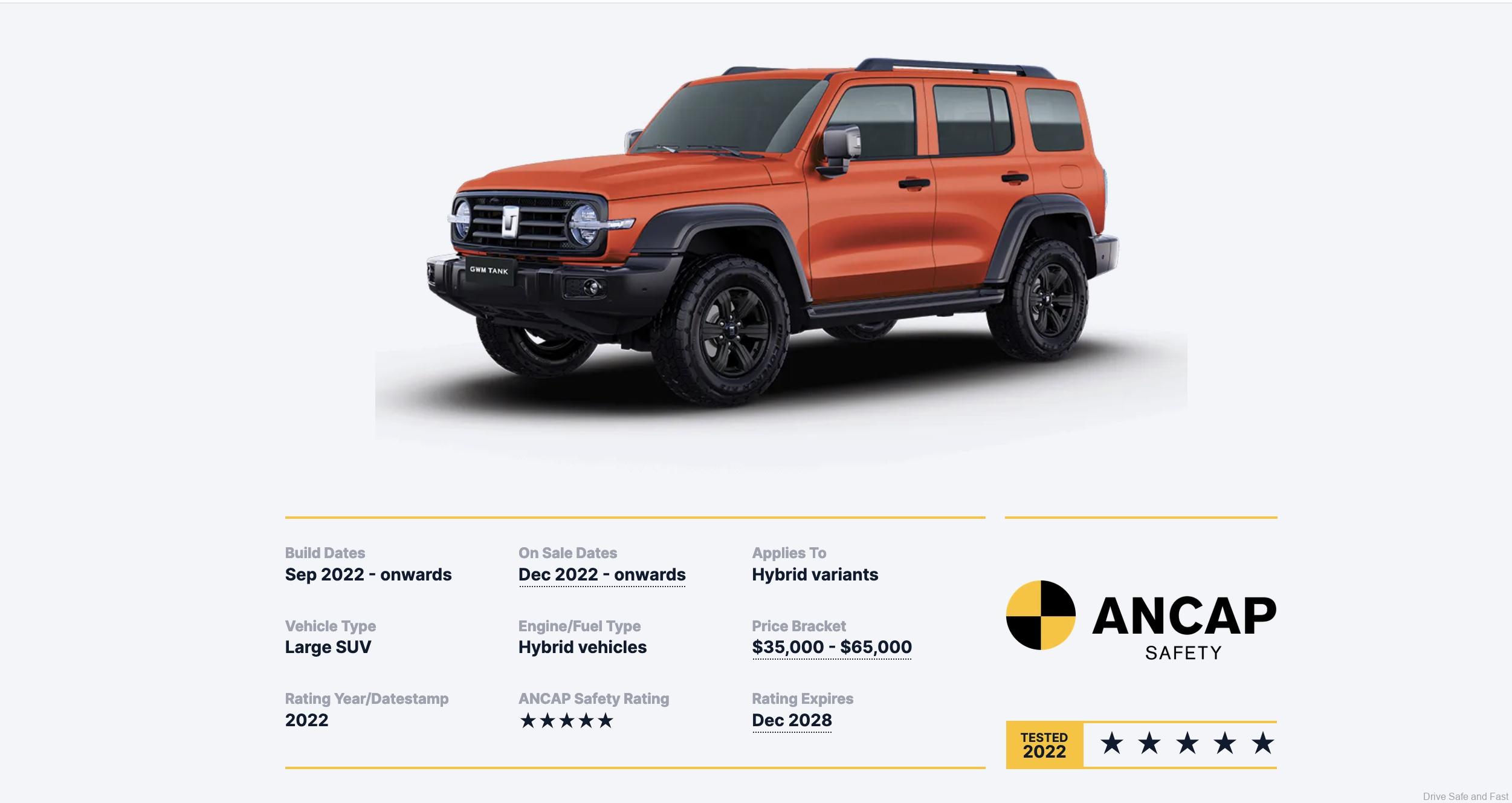 GWM Tank 300 Gets 5 Star ANCAP Safety Rating