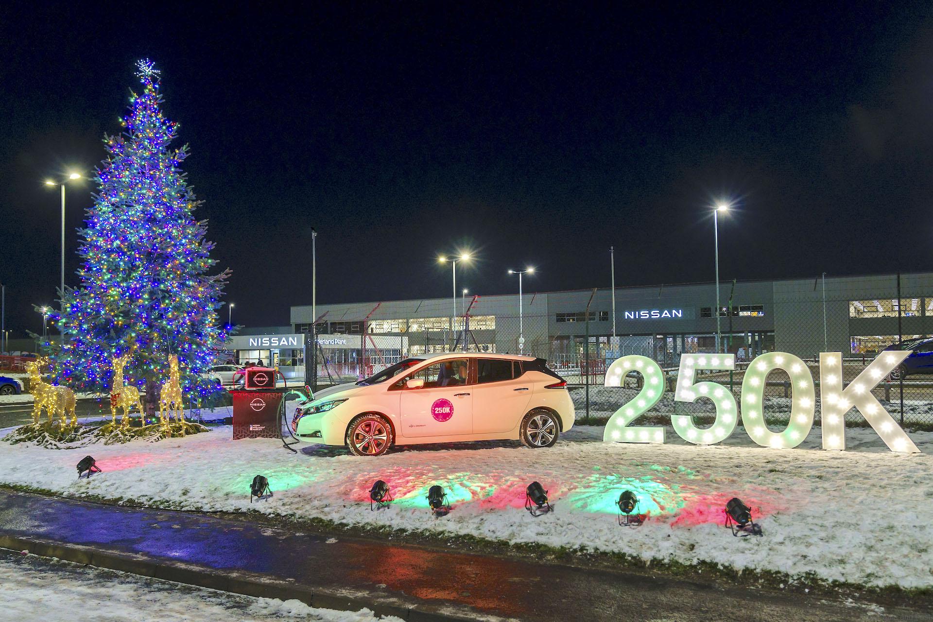 A Nissan LEAF is providing the sparkle for Nissan Sunderland Plant’s Christmas display to celebrate production of 250,000 of the pioneering electric vehicle in the UK.