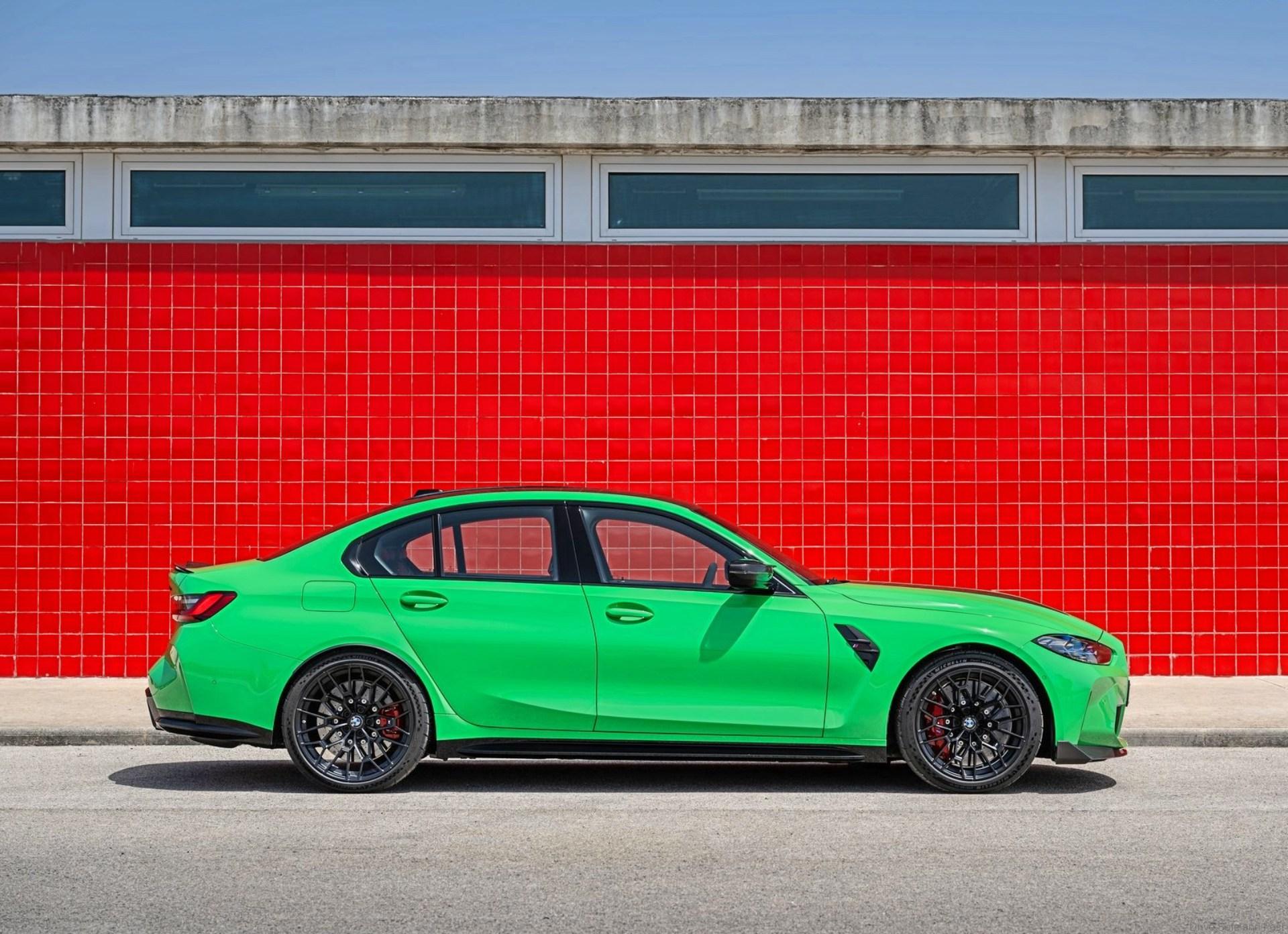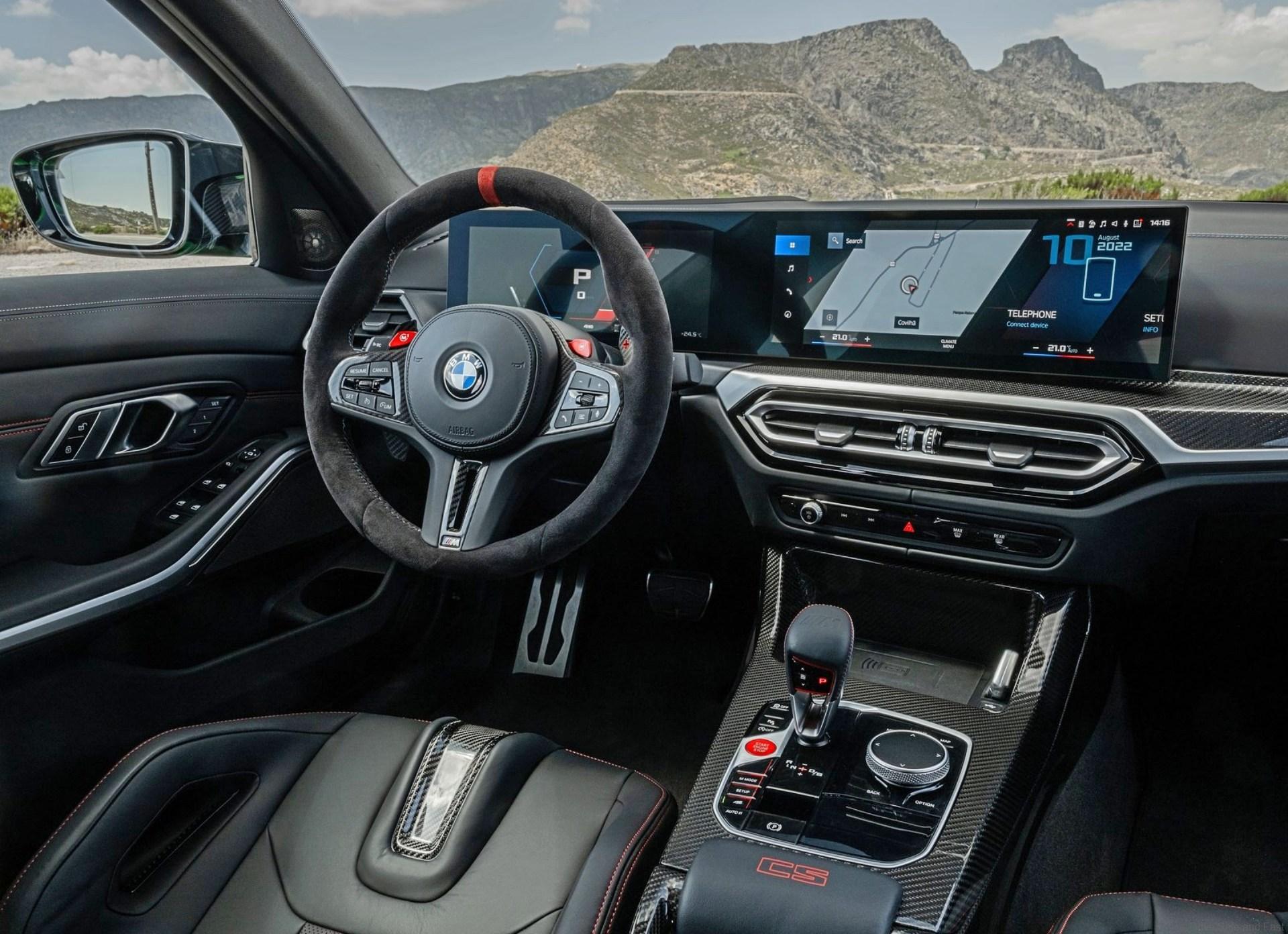 The new BMW M3 CS will be built in limited quantities at the Munich plant starting March 2023 with the US, German, UK and Japan markets being prioritized for sales. Exclusive Frozen Solid White metallic paint is available for the exterior. Signal Green solid, Brooklyn Grey metallic and Sapphire Black metallic are all also available.