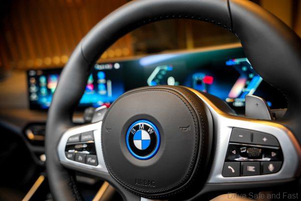 All three variants are very similarly specified with the M Sport package and same rims, but there are additional equipment pieces for the more expensive variants. This includes a better sound system and M Sport brakes with blue calipers. The Curved Display is a standard feature across all variants presented today.
