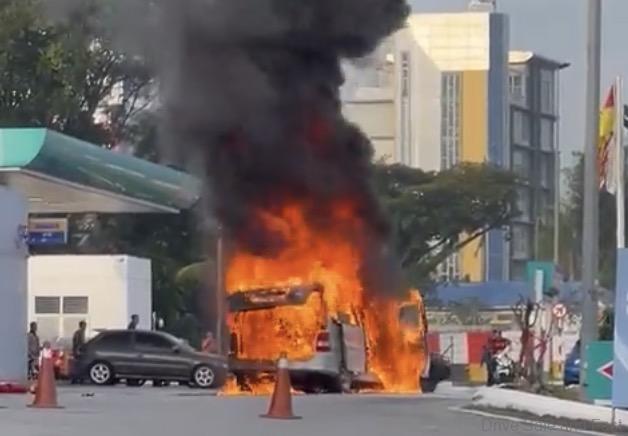 “Operations commander Sharel Mohamad informed that the fire that took place at the Petronas at the Kajang Dispersal Link Expressway involved an MPV. The car was 90 per cent destroyed and the driver, who was alone during the fire, managed to escape before the arrival of the rescue team,” said a Selangor Fire and Rescue Department spokesman. The Fire Department received the distress call at 8.03am.