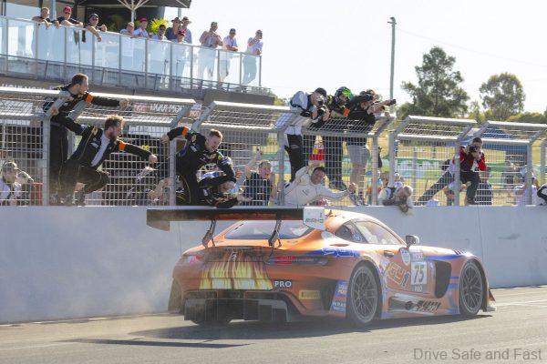 Try as he might with a wall rub at Sulman Park Campbell was unable to pressure Gounon into a mistake. Sheldon van der Linde brought home fourth in the #32 WRT BMW with Dries Vanthoor and Charles Weerts.