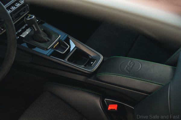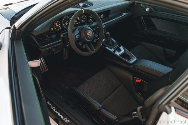 Several special interior modifications also set cars equipped with the package apart. These include deviated stitching in green, illuminated door sill guards with “Tribute to Carrera RS” script, a center console lid embossed with the “RS” logo, and keys painted in white. These interior upgrades add to the overall luxury and exclusivity of the package.