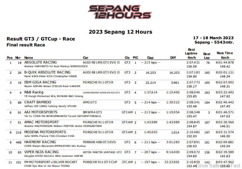 Congratulations to Nazim Azman Nazim Azman Racing , Adrian D’Silva, Reid Harker Reid Harker Motorsport, and EBM team Earl Bamber Motorsport.