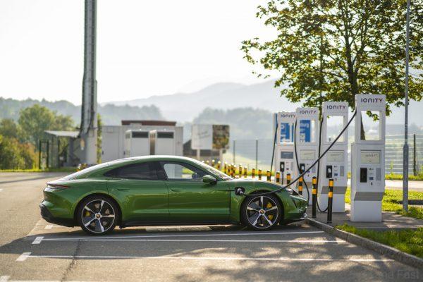 The Taycan is the first production vehicle with a system voltage of 800 volts instead of the usual 400 volts for electric cars.