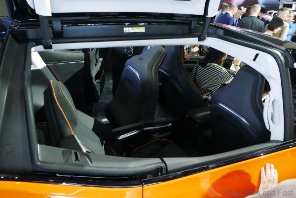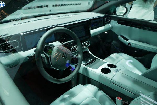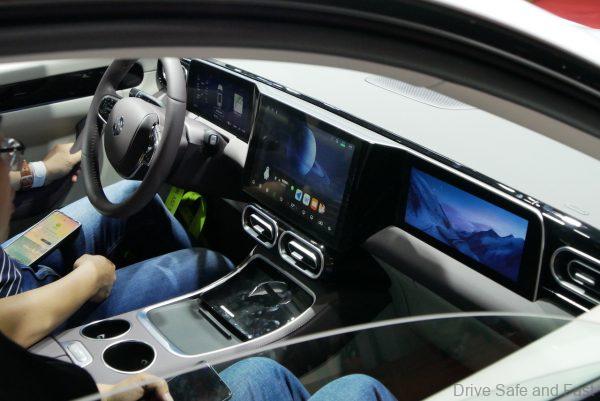 Both cars lacked physical door handles and instead used capacitive buttons to unlatch. Inside, it was equally impressive with a triple screen array.