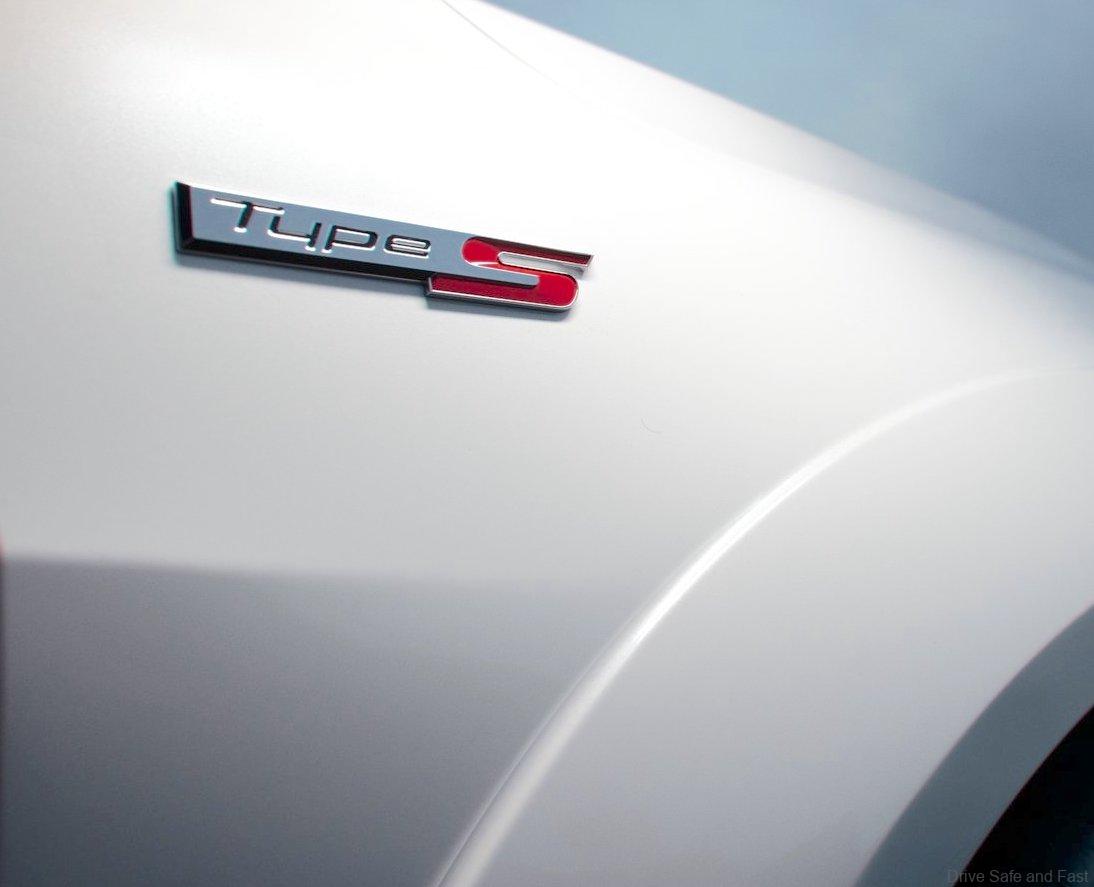 A black Ultrasuede shift boot with colored stitching continues the high-performance theme. Type S logos appear on the steering wheel, shifter boot surround and the front seat headrests.