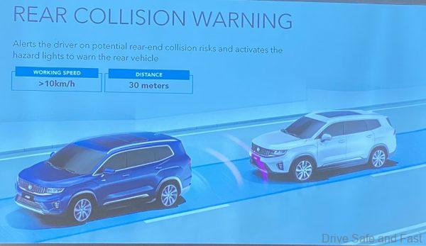 Are you tired of BMW drivers coming right up to your rear bumper on the highway and then flashing their high beams? Well, the X90 has a technical solution to this problem. Proton calls its Rear Collision Warning. Using the rear millimeter wave radar, the X90 will detect if the driver behind is at risk of causing an accident and activate the hazard lights to deter him. The X90’s instrument cluster will also issue the driver a warning so that they may consider moving out of the fast lane and making the highway safer for everyone.