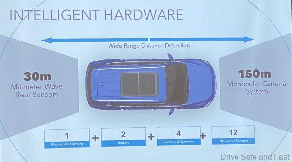 The X70 and X50 were already packed with safety systems. The X90 takes this further by using data from 1 front-mounted monocular camera, 2 radars, 4 surround cameras and 12 ultrasonic sensors. These allow it to carry out its various ADAS and self-parking features. The front-mounted camera has a range of 150m while the millimeter wave rear sensors can detect objects up to 30m.