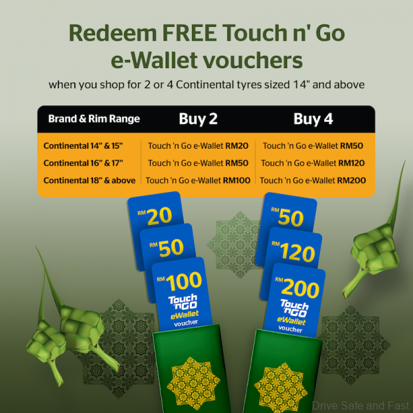 TCP ensures that you get a one-to-one tyre replacements should your new set of Continental tyres get unexpected damaged on the road accidentally in the months following your purchase. This TCP is applicable for tyre sized 14” and above. Just in time for the Raya season, Continental will be providing an additional e-wallet as a reward on top of this comprehensive tyre warranty plan for all Continental branded tyres size 14” and above.