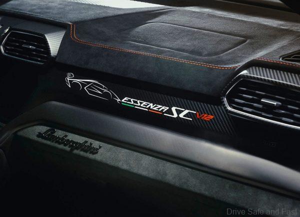 The Dark Package accentuates the interior, with the exception of the contrasting red door handles, adding a vibrant flair to the overall design. Carbon fiber details can be found on the passenger side of the dashboard, as well as on the kick plates, featuring the Essenza SCV12 logo and silhouette. To elevate the trim’s uniqueness, two celebratory carbon fiber plaques are included in the passenger compartment. One plaque proudly displays the Lamborghini 60th Anniversary logo, while the other showcases the vehicle number or the customer’s name.
