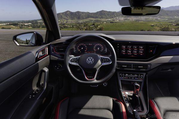 In terms of exterior design highlights, the Polo GTI Edition 25 comes with red brake calipers and trim strips, a honeycomb design on the front grille and chrome-plated tailpipes. 18″ Adelaide alloy wheels in gloss black, a black roof and black wing mirror caps complete the two-tone look.