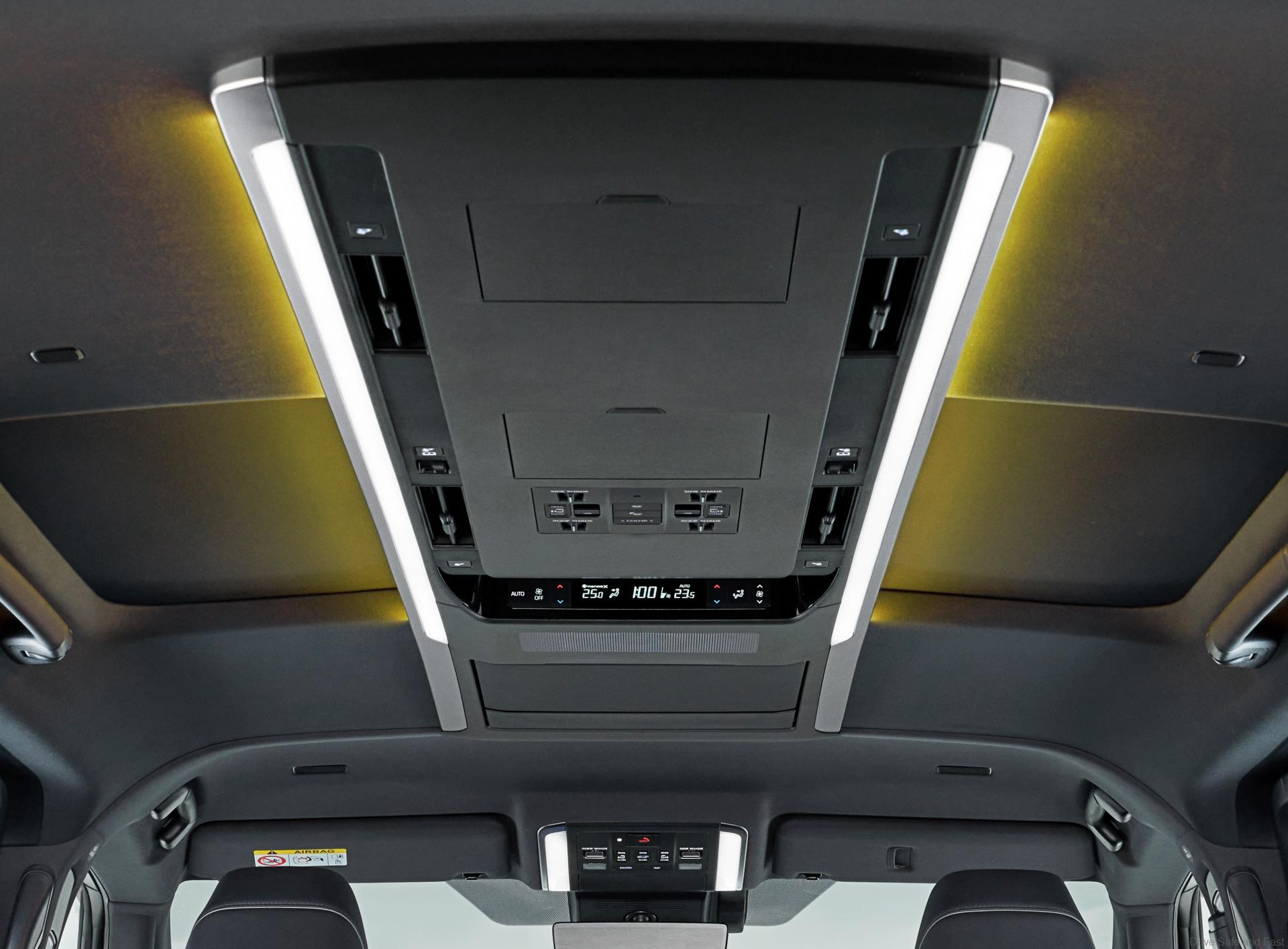 First is the new ceiling layout. For rear passengers, there are now two moonroofs that are independantly operable in case right and left passengers want different amounts of visibility. The new 4th generation models also use a new Super-Long Overhead Console that’s located between the two moonroofs. The console provides access to lighting switches and air conditioning controls and vents. This is also the first Toyota model to feature pull-down rear sunshades.