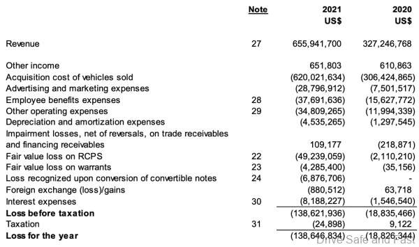 2021 revenues was USD655.9 million with Gross Profit after deducting cost of vehicles sold was USD35.9 million (gross profit margin of 5.5 percent).