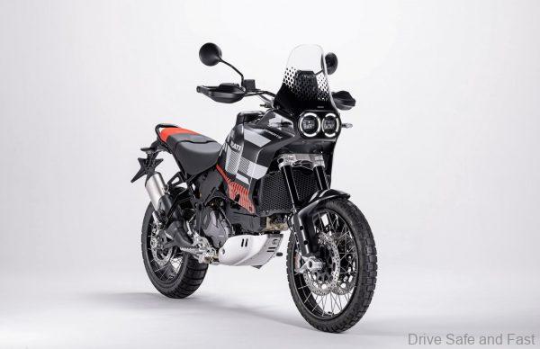 The DesertX now flaunts a captivating black, gray, and red color scheme, adorned with graphics paying homage to the advanced technology of the Audi RS Q e-tron. To complete the stunning design, a striking red accent is integrated into the black saddle, adding an extra touch of flair.