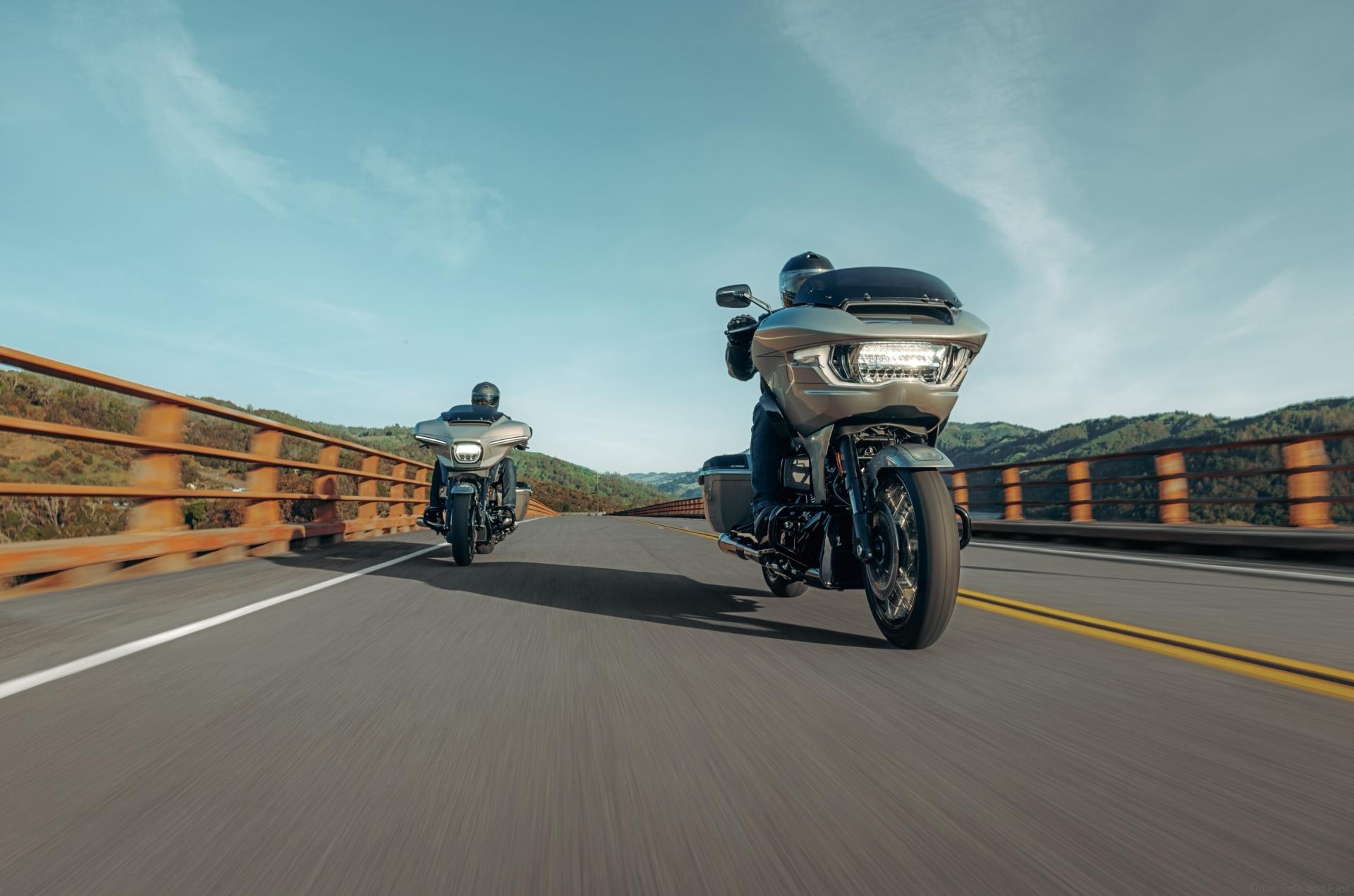 The CVO Street Glide sheds 14kg of dry weight, while the CVO Road Glide reduces weight by an impressive 15.9kg, compared to their predecessors. The high-performance front and rear SHOWA suspension components not only promote confident handling but also offer a significant improvement in rider comfort. With rear suspension travel increased by 50 percent, riders can expect a smoother and more enjoyable ride.